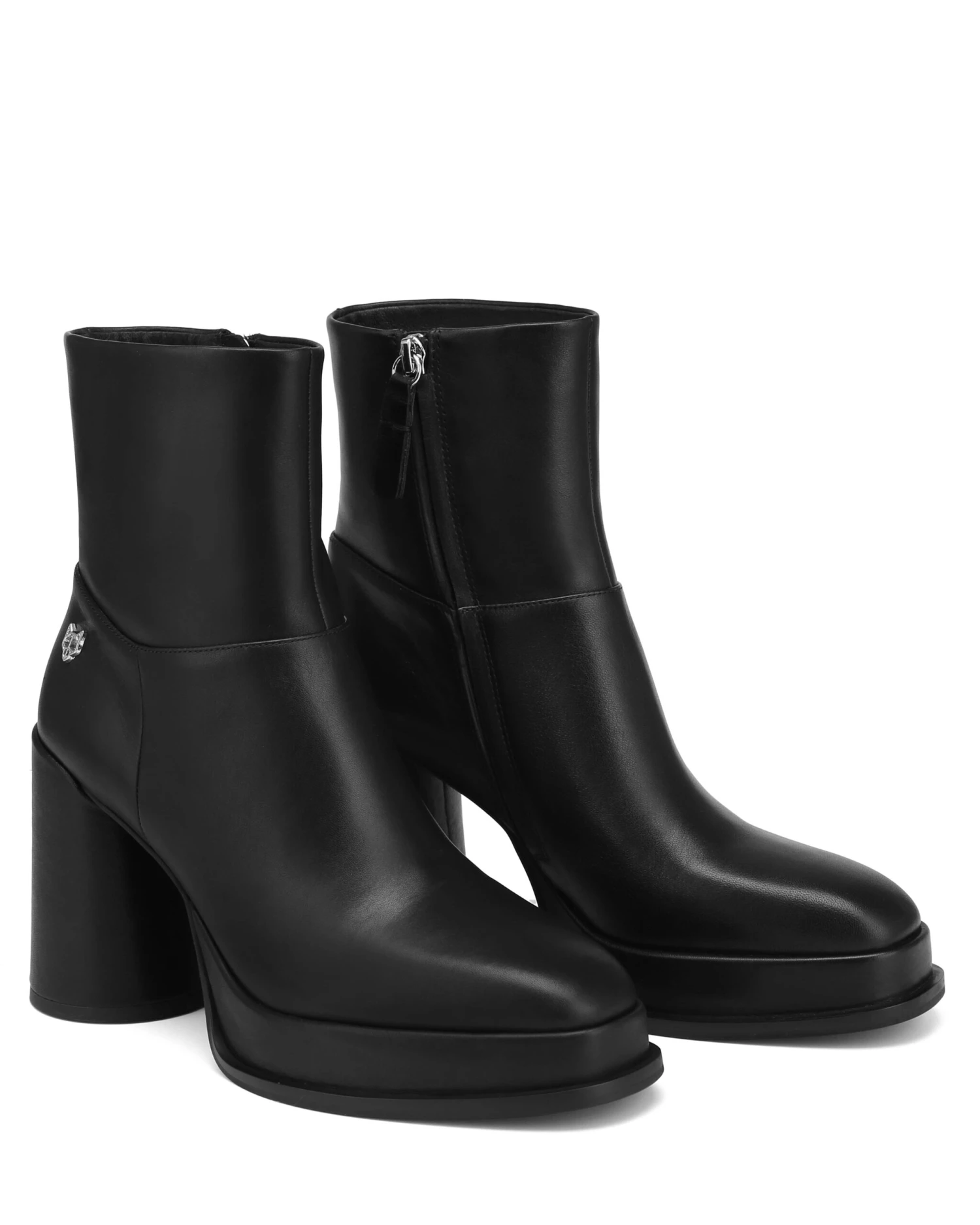 Crush is a NW designed ankle boot. Crush is presented on a custom Naked Wolfe designed platform featuring a 3mm randed outsole and bespoke cylinder shape heel. Crush features the famous TPU silver wolfe head on center back of heel. Crush is a ankle height boot made from 100% leather.