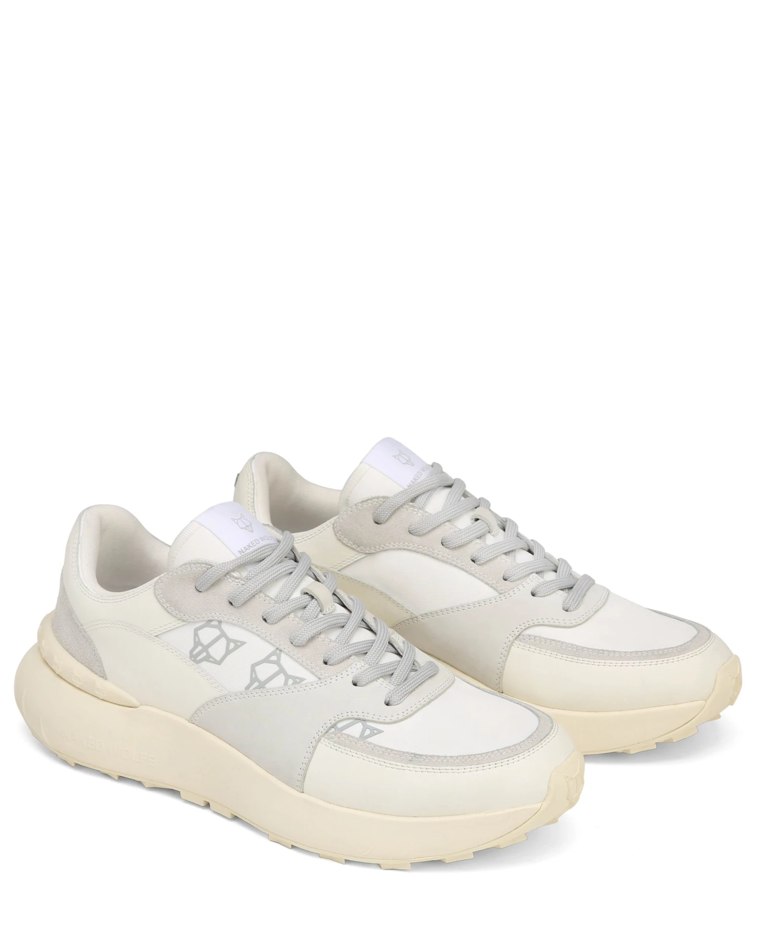 Introducing Dart Triple White – The newest sneaker to our range featuring a new custom cow suede, cow leather and soft nylon upper on a treaded phylon sole. Includes a rubber branded wolfe head on back counter, 3D printed wolfe heads on mesh side panel, and a custom grosgrain tongue label. This style is accented with our branded leather supportive insole sock, and thick woven round lace.Â