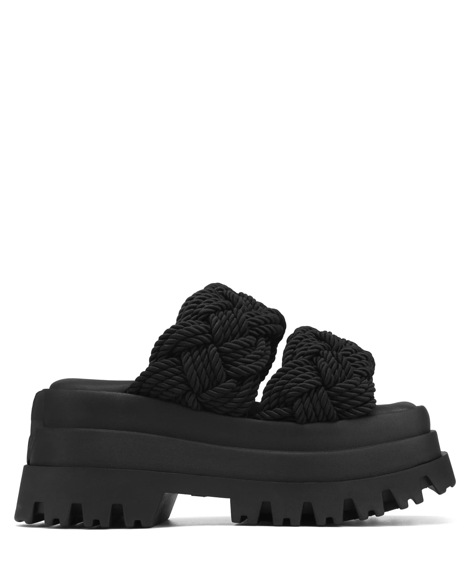 Drama the newest addition to our chunky sandal family. Drama rocks a cute double plaited rope upper. Drama is on our iconic tripple stack Naked Wolfe construction, featuring bold square toe and padded insole.