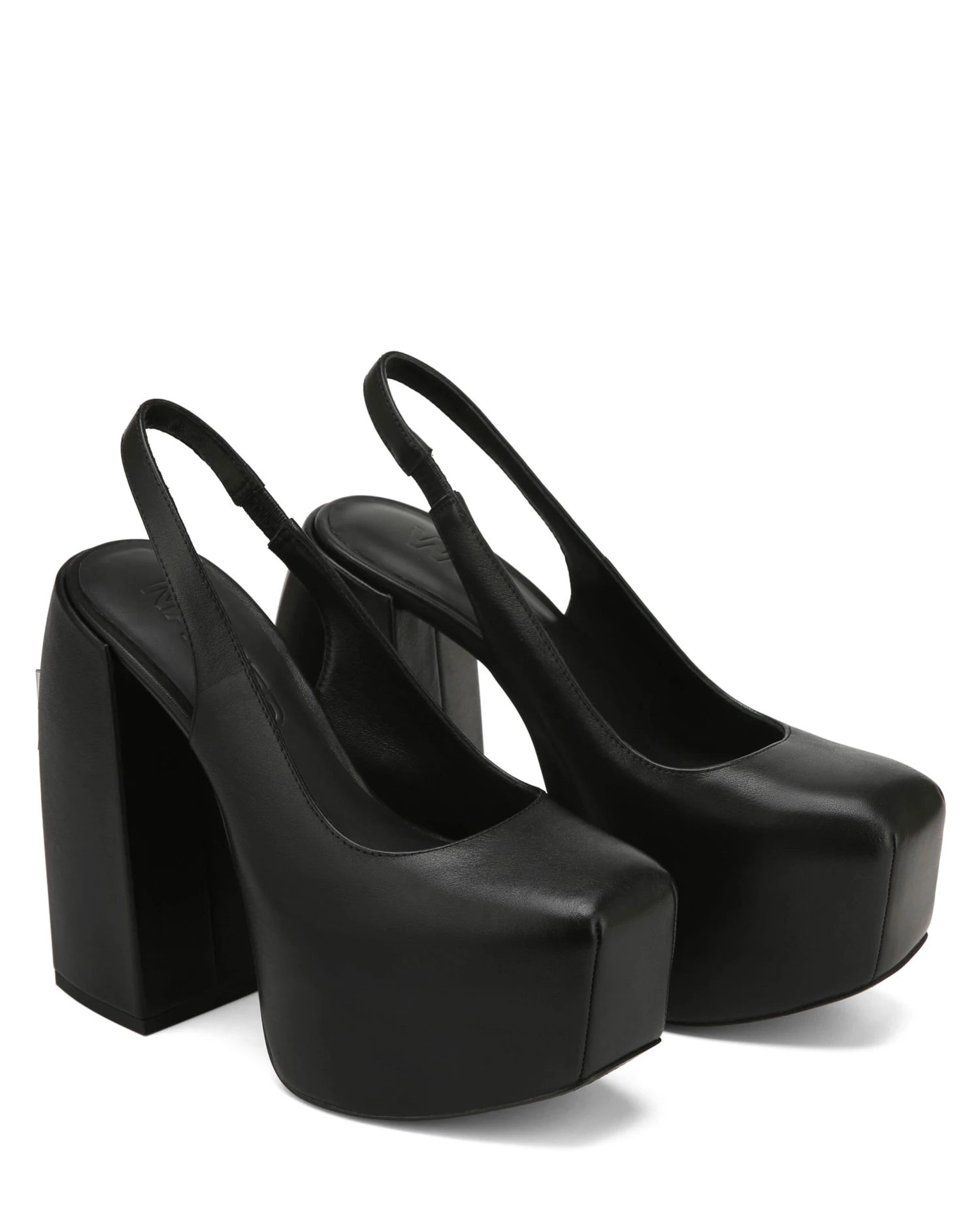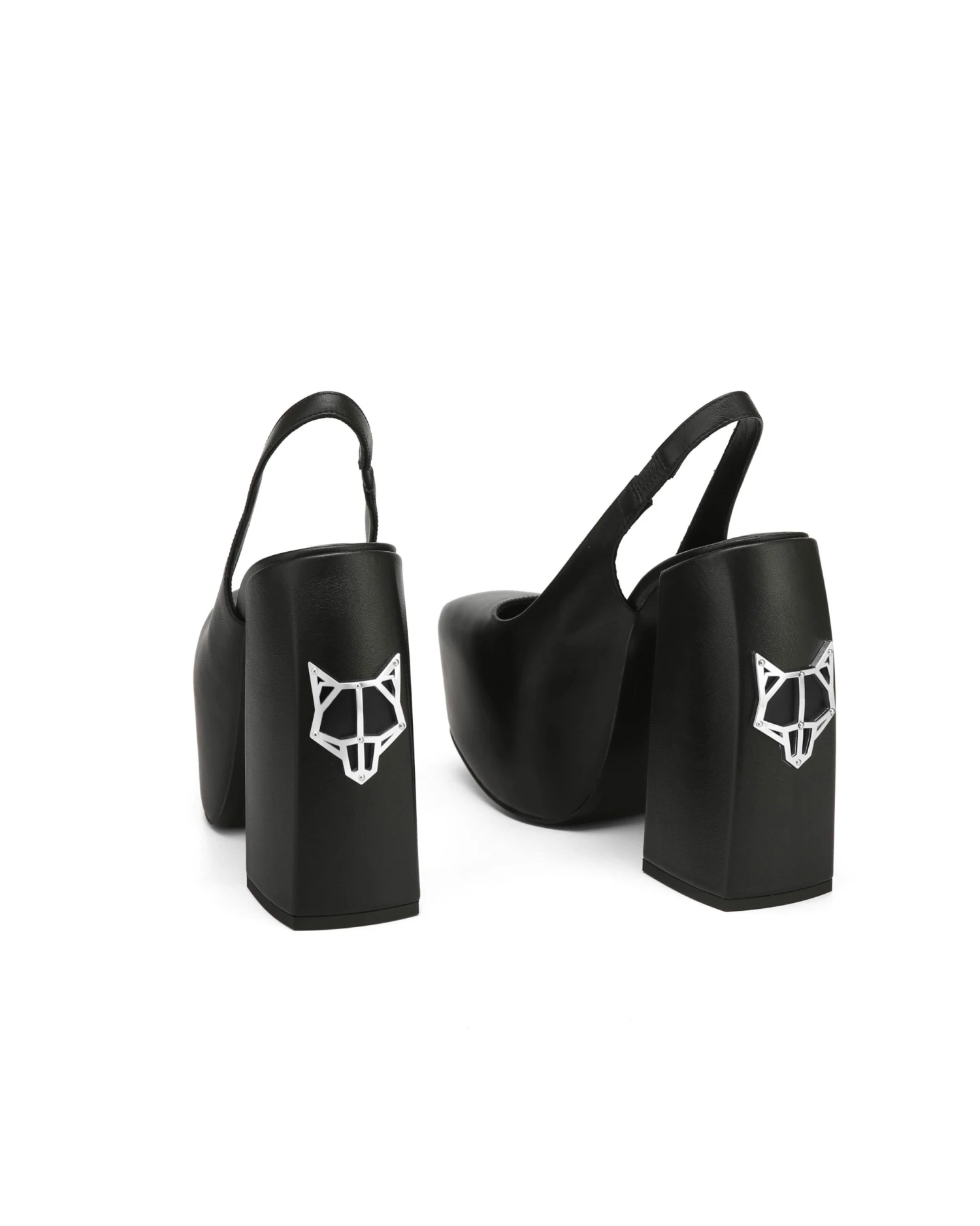 Introducing, Loyal. Loyal is a sexy sling back heel which is presented on a statement over lasted platform. Loyal has a bold squared toe shape and a custom designed Naked Wolfe angular heel shape, featuring the famous wolfe head TPU plaque on the heel. Loyal is available in 2 colourways.