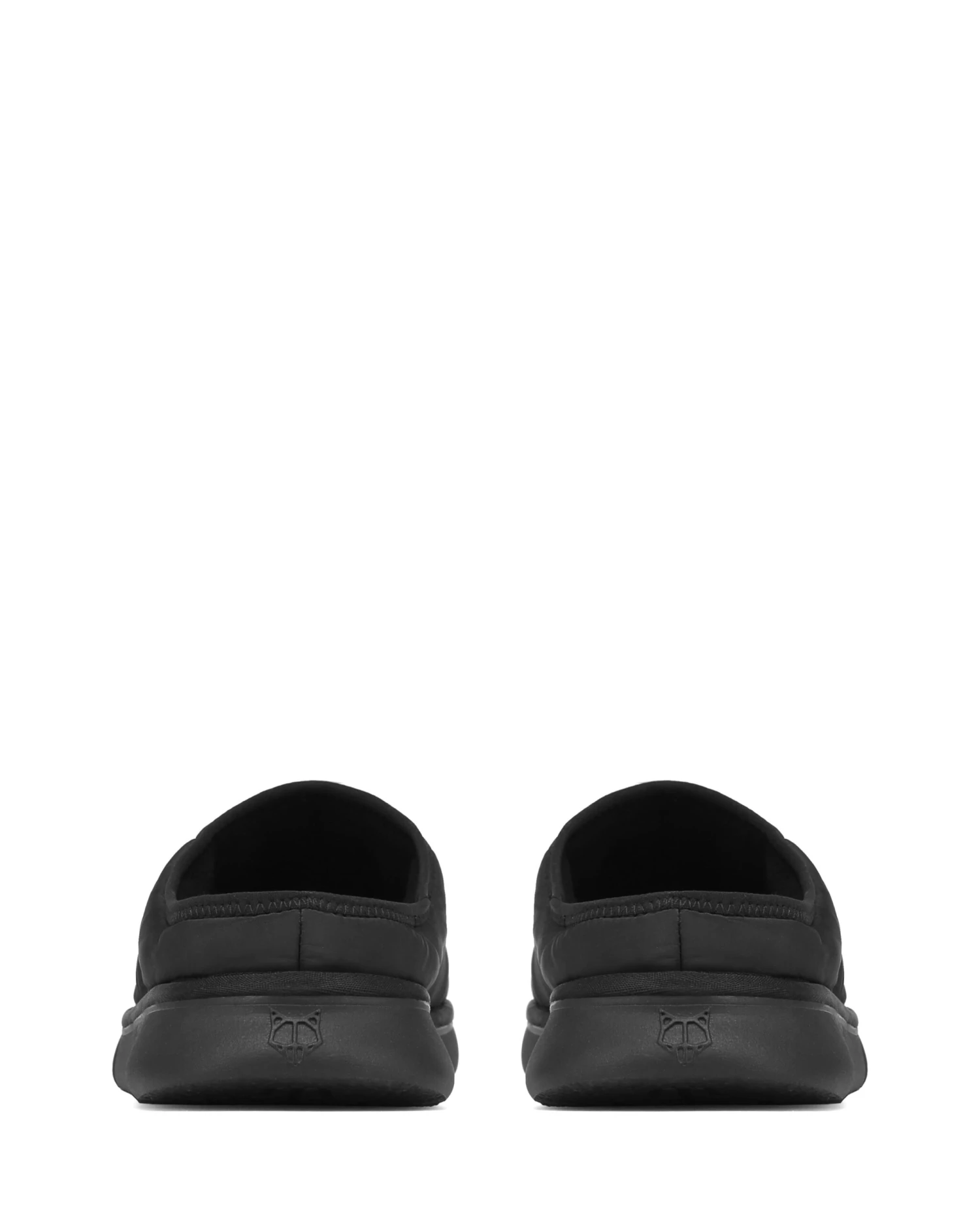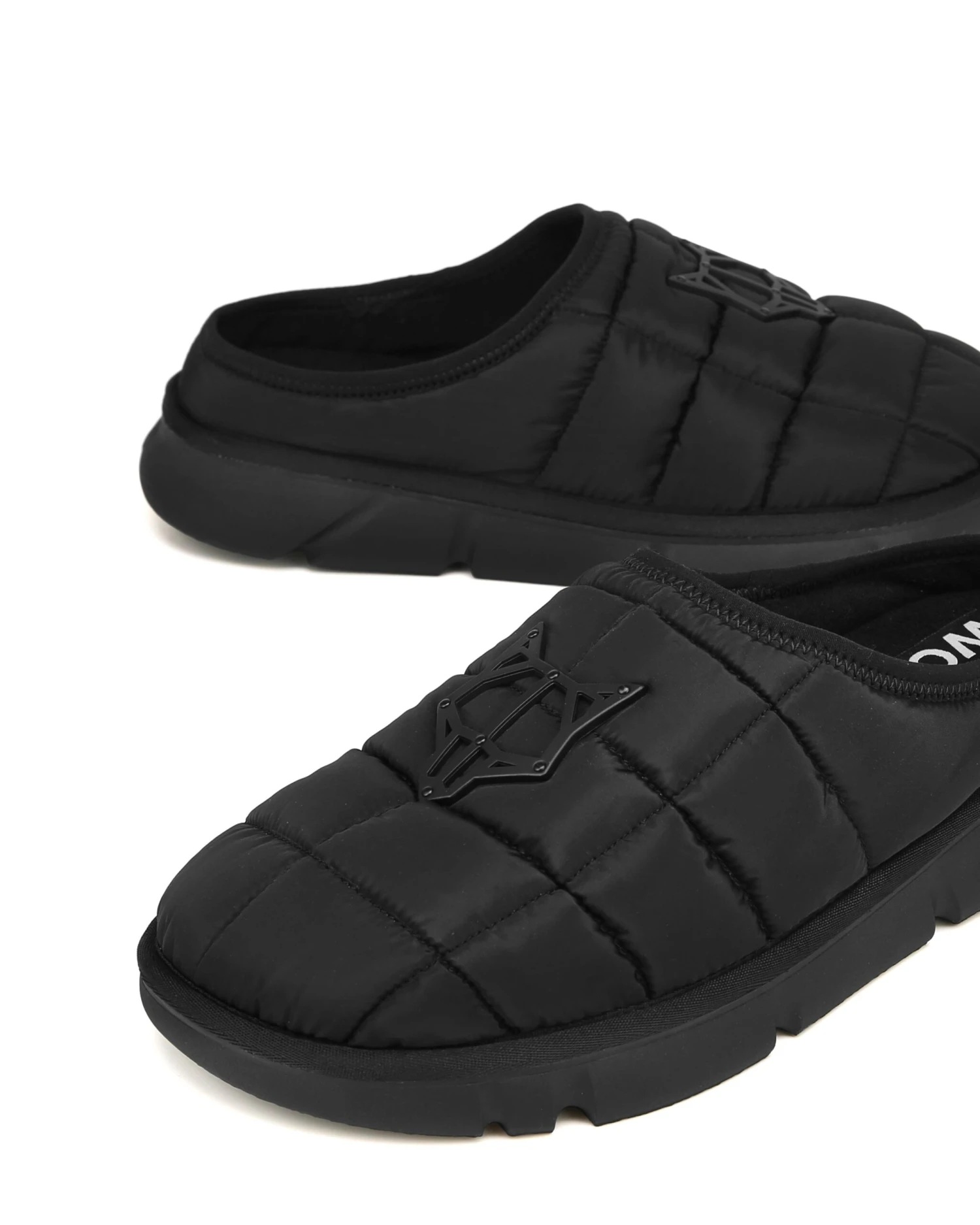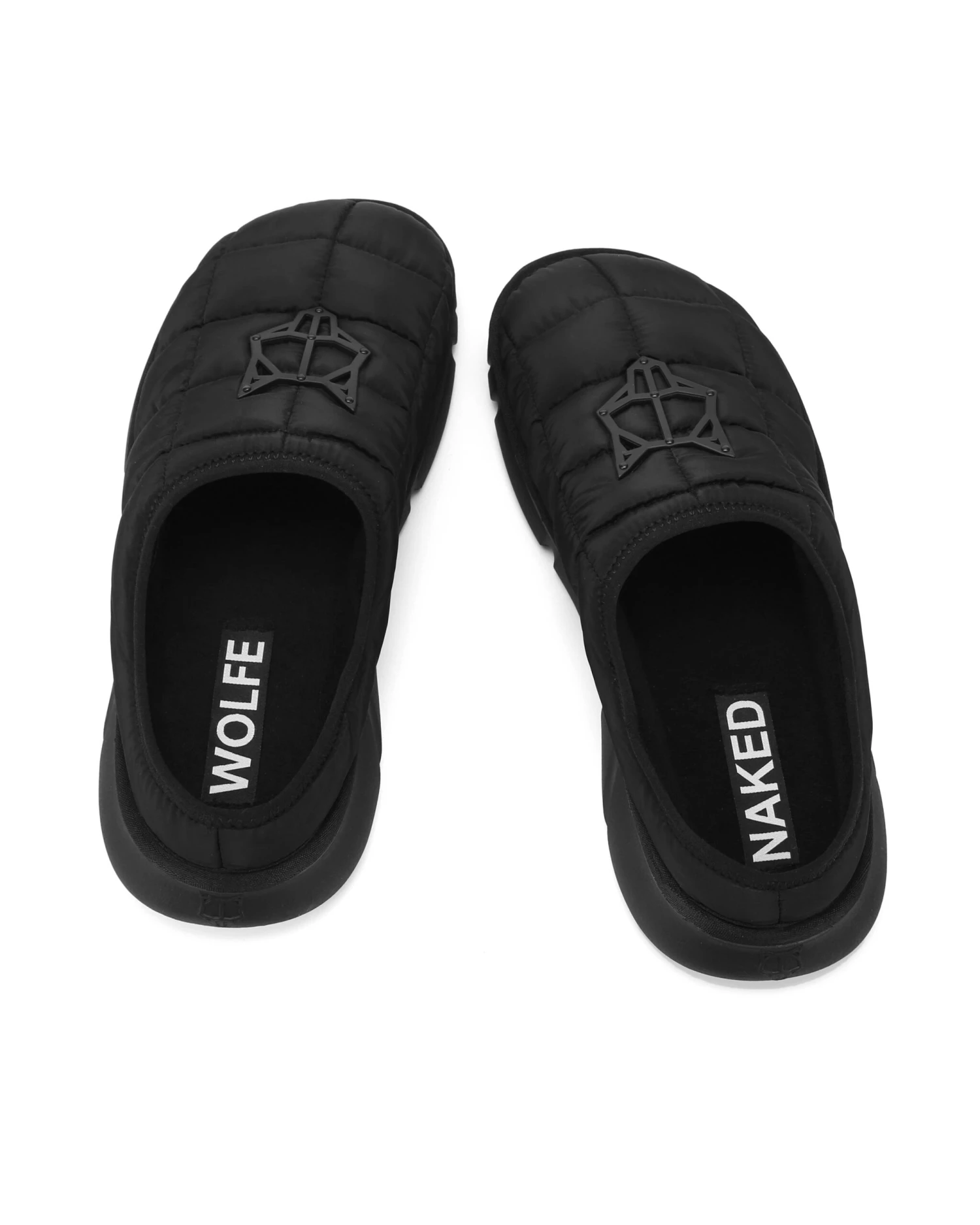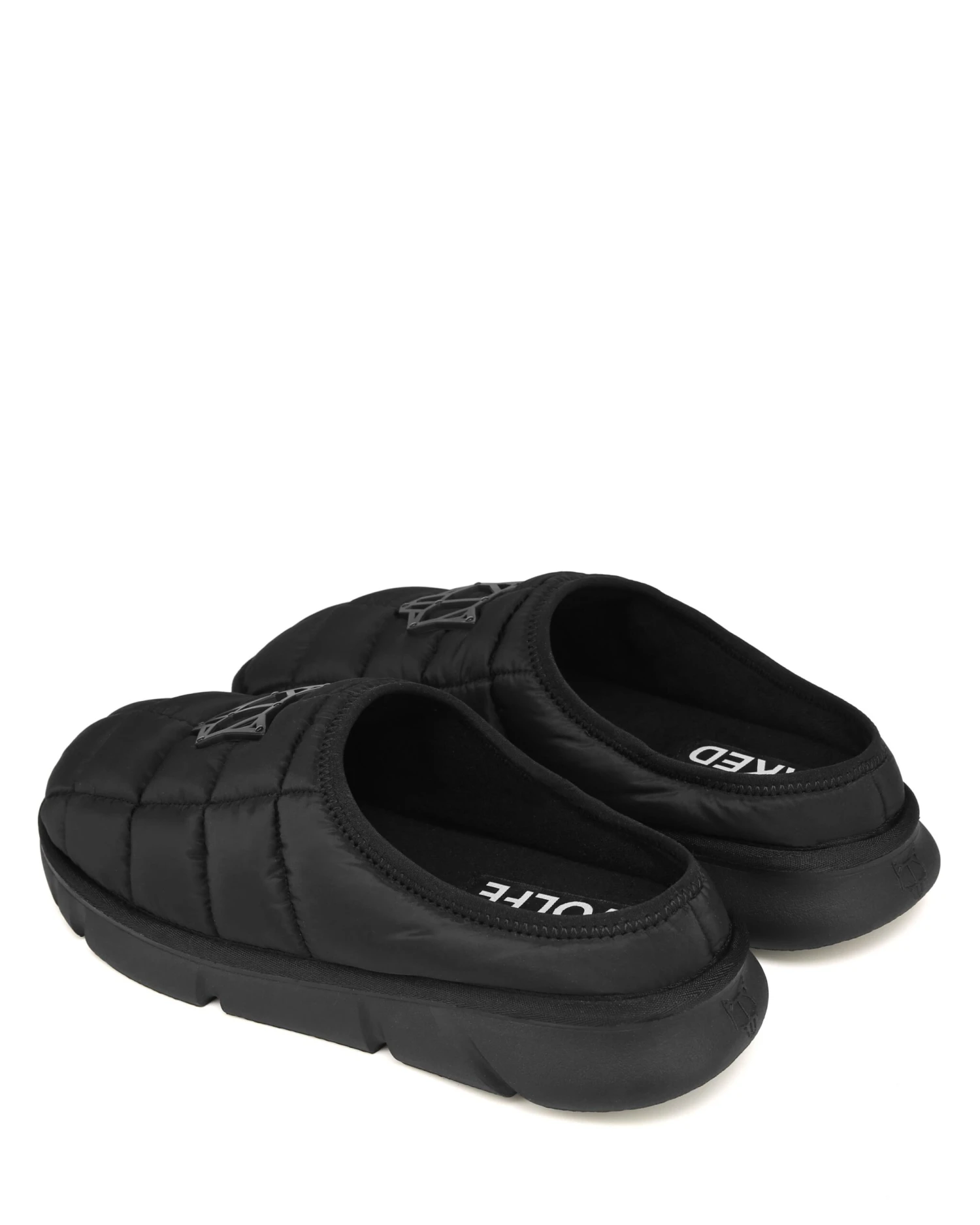 Montana, the closed toe puffer slide made with toweling lining and waterproof nylon upper featuring the famous Wolfe Head logo on the toe.