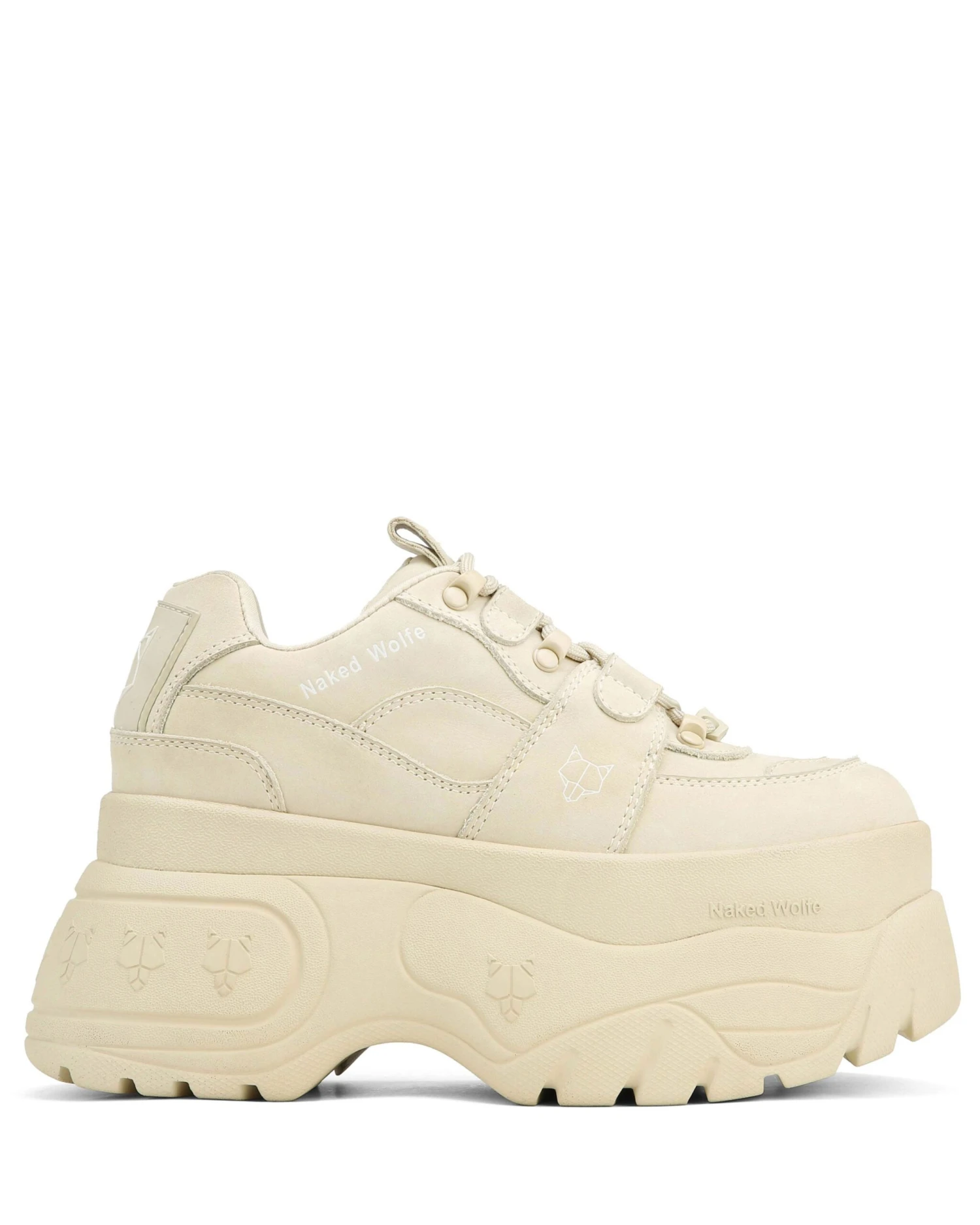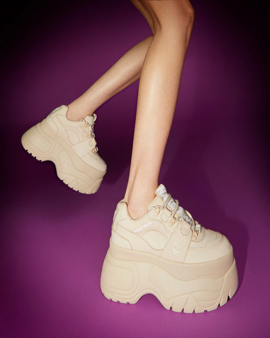 Sinner is our latest 90’s inspired Mega platform sneaker. This sneaker is 100% all over Nubuck leather. Featuring our Famous Naked Wolfe logo and Wolfe head, 3d Rubber patch logo and our Gimmick logo tape detail which runs down the tongue. This style incorporates our famous Naked Wolfe Chunky Platform Sole which is super soft and light, With our Wolfe head print across it.