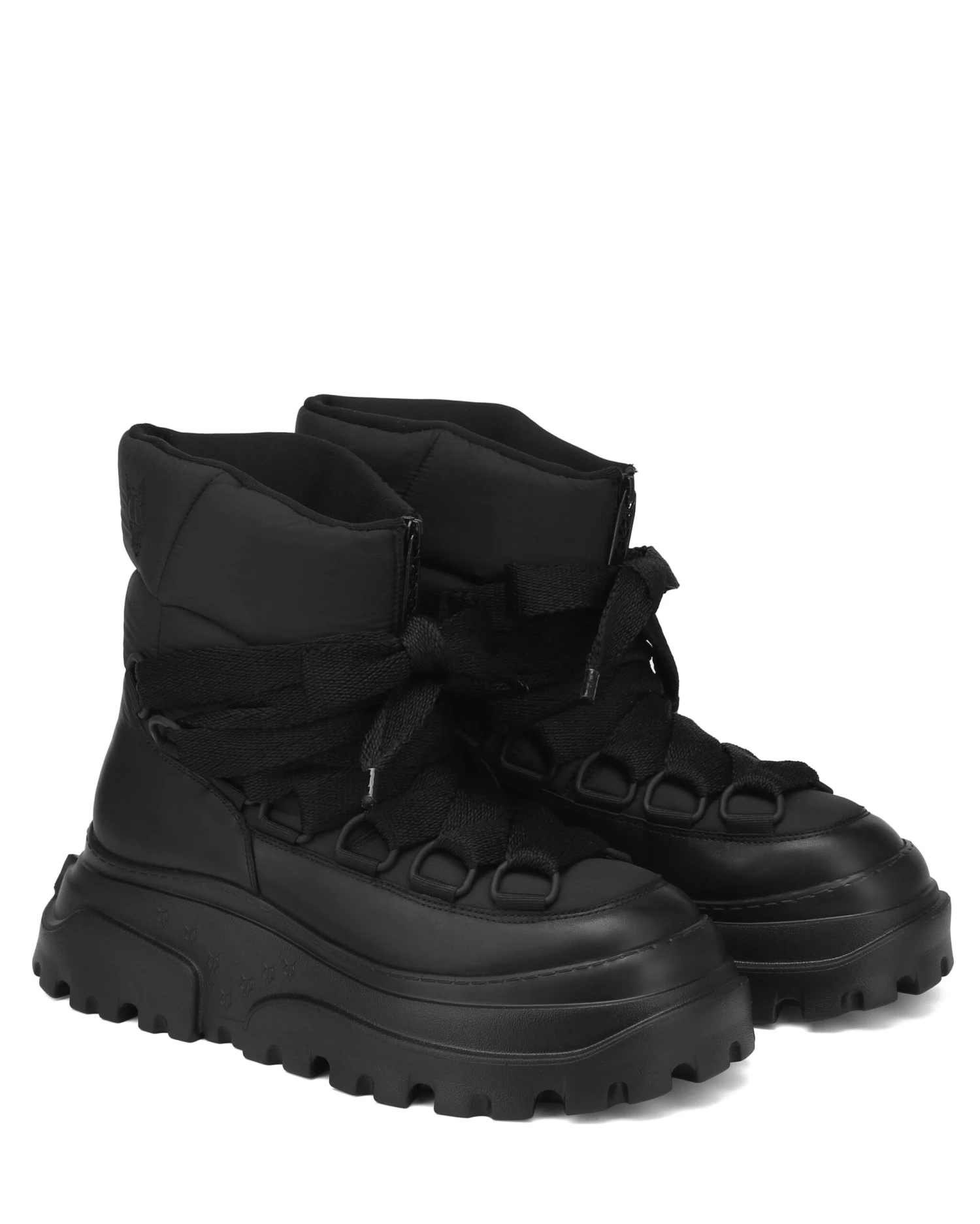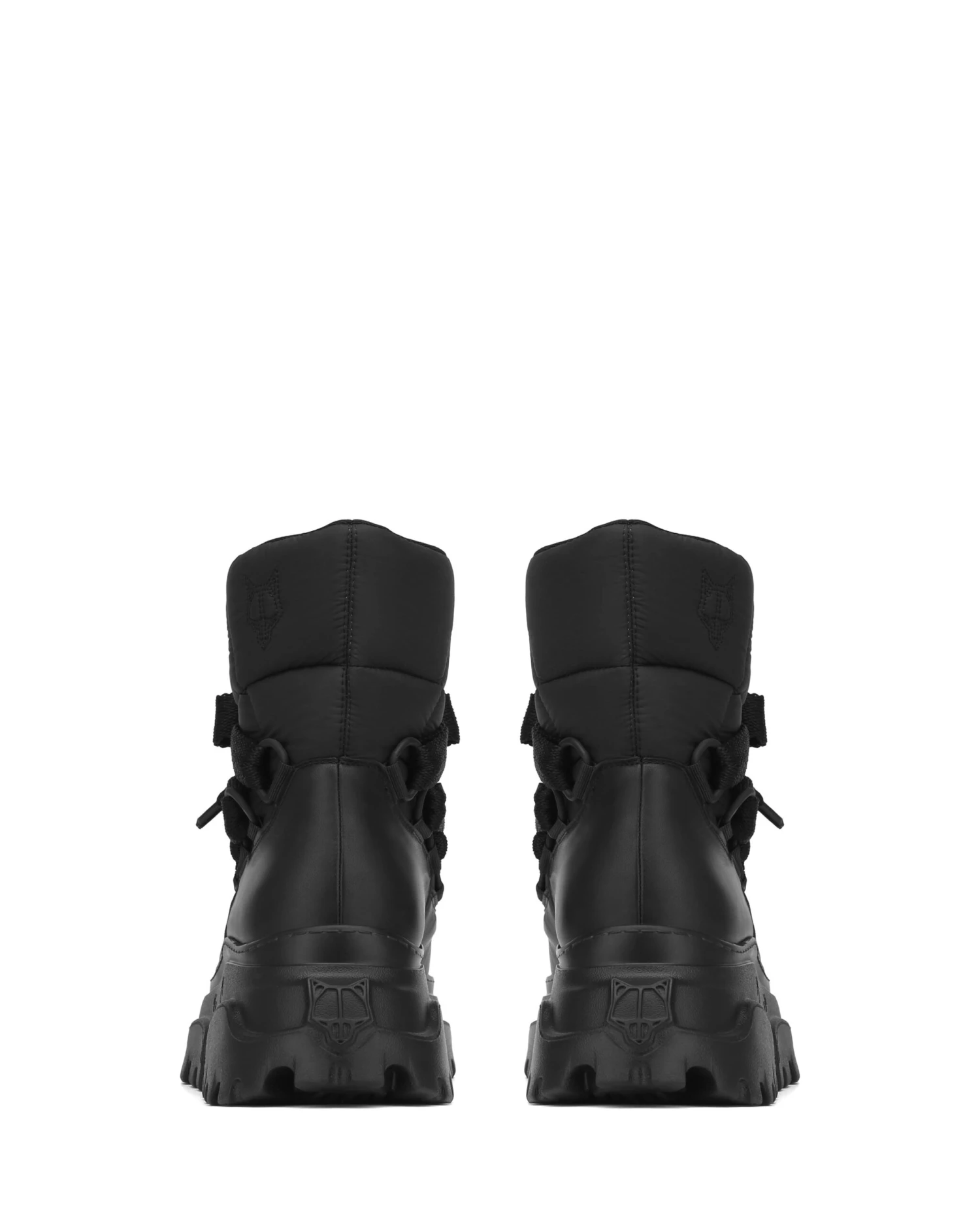 Introducing Slam – the puffer boot of our FW 22 collection. This boot features a padded puffer boot upper, with a front zip which displays a new silver wolfe head zipper. This NWM puffer boot is presented on a Custom Naked Wolfe designed 2-tier outsole with a Wolfe Head logo embedded in the heel. Signed off with our classic chunky laces and terry toweling lining, these boots are designed to be just as comfortable as our sneakers.Â