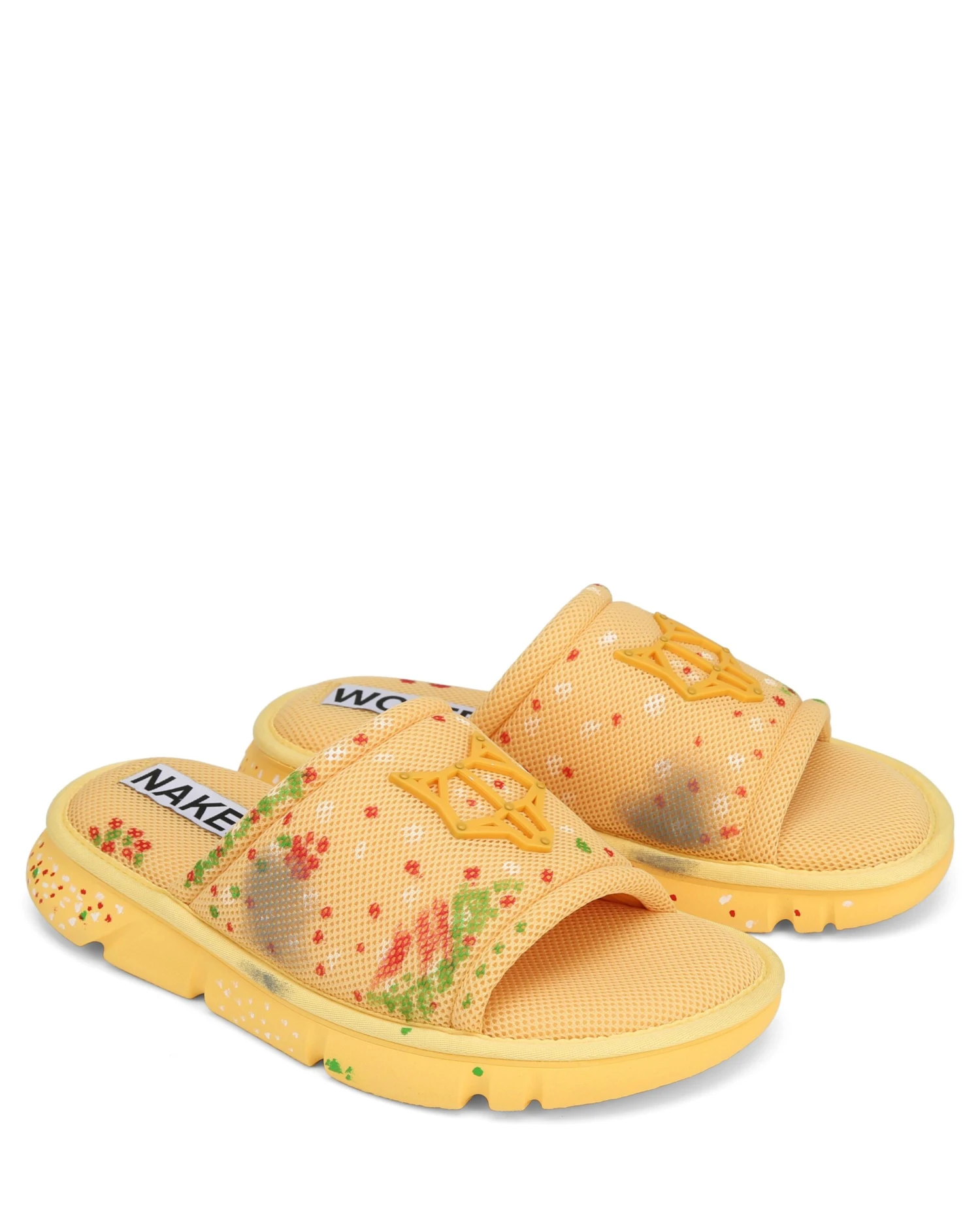 Vegas, the slide made with mesh nylon material featuring hand paint splatter in iconic prints such as camo. Featuring TPU wolfe head logo.Â