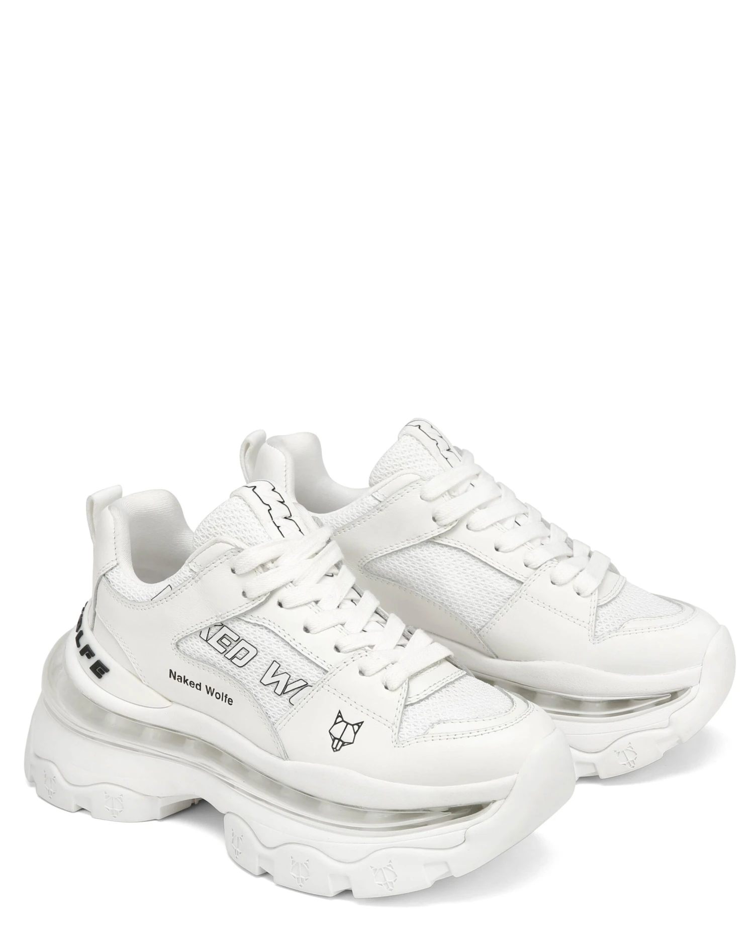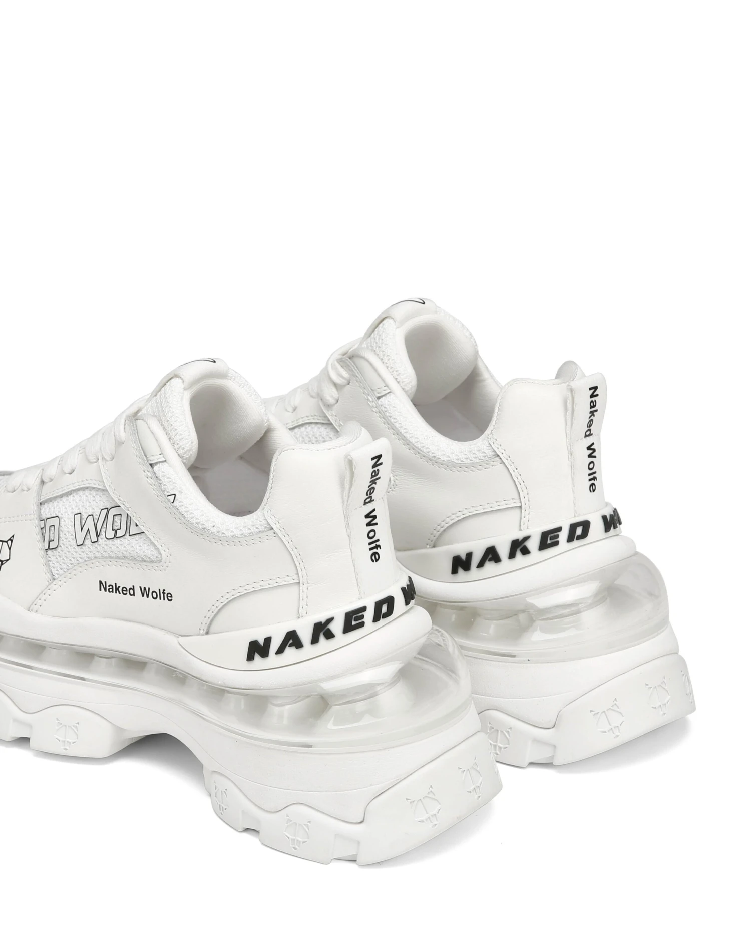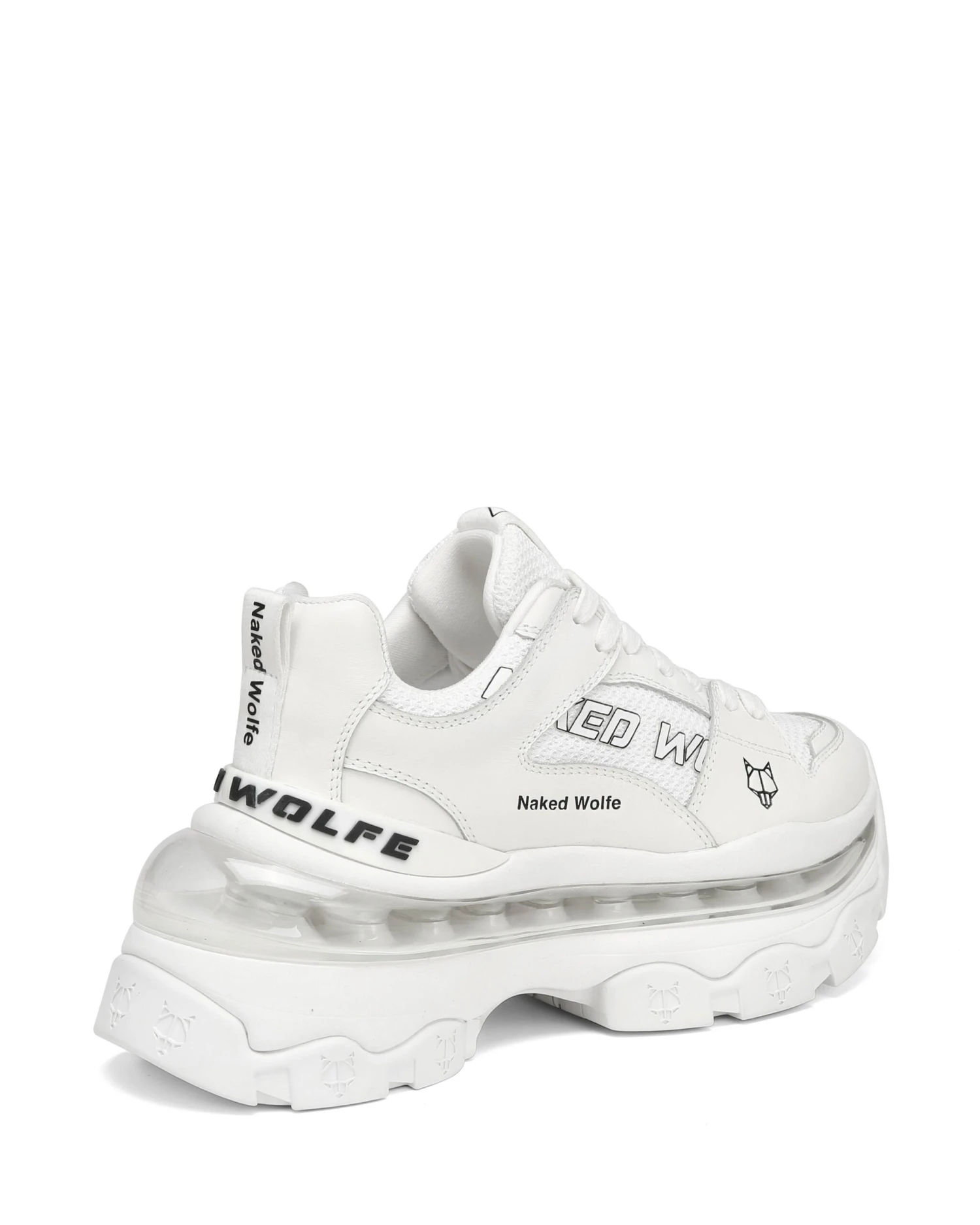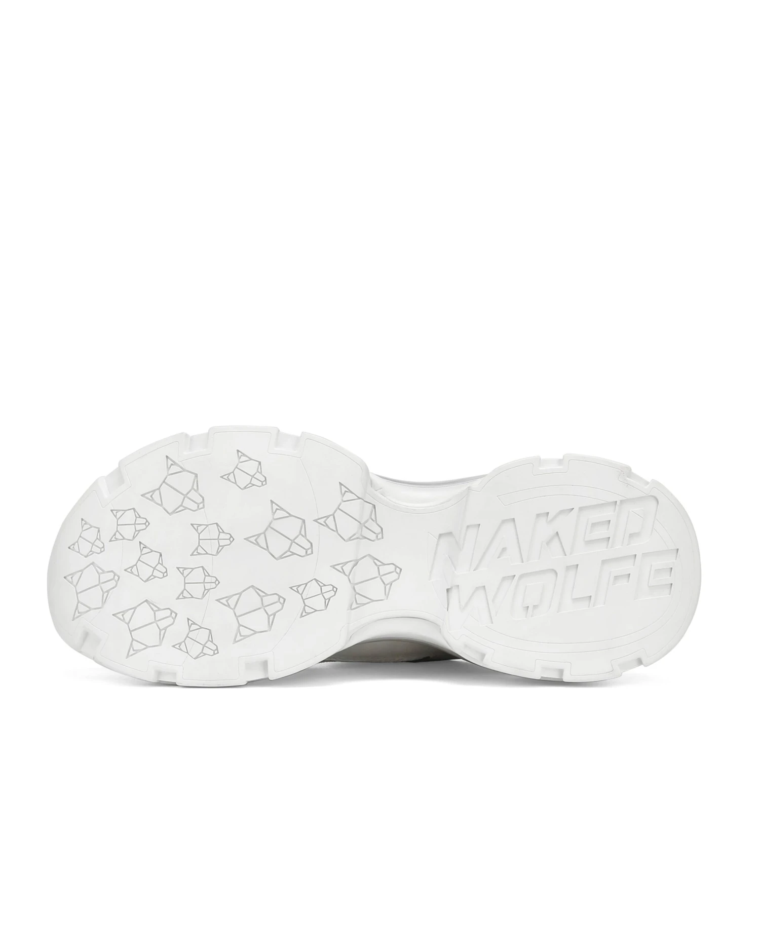 Wind, our new chunky sneaker is made from a mesh and leather mixed upper featuring Naked Wolfe printed gimmick logo, embossed Naked Wolfe logo, embossed Wolfe head, Naked Wolfe logo back tape and Gimmick logo tongue tape. The custom design outsole©️ features a TPU “Gimmick” logo cap on the heel and is compiled of super soft IP midsoles, sandwiching a custom designed bubble pocket with a Wolfe Head lasered rubber outsole.