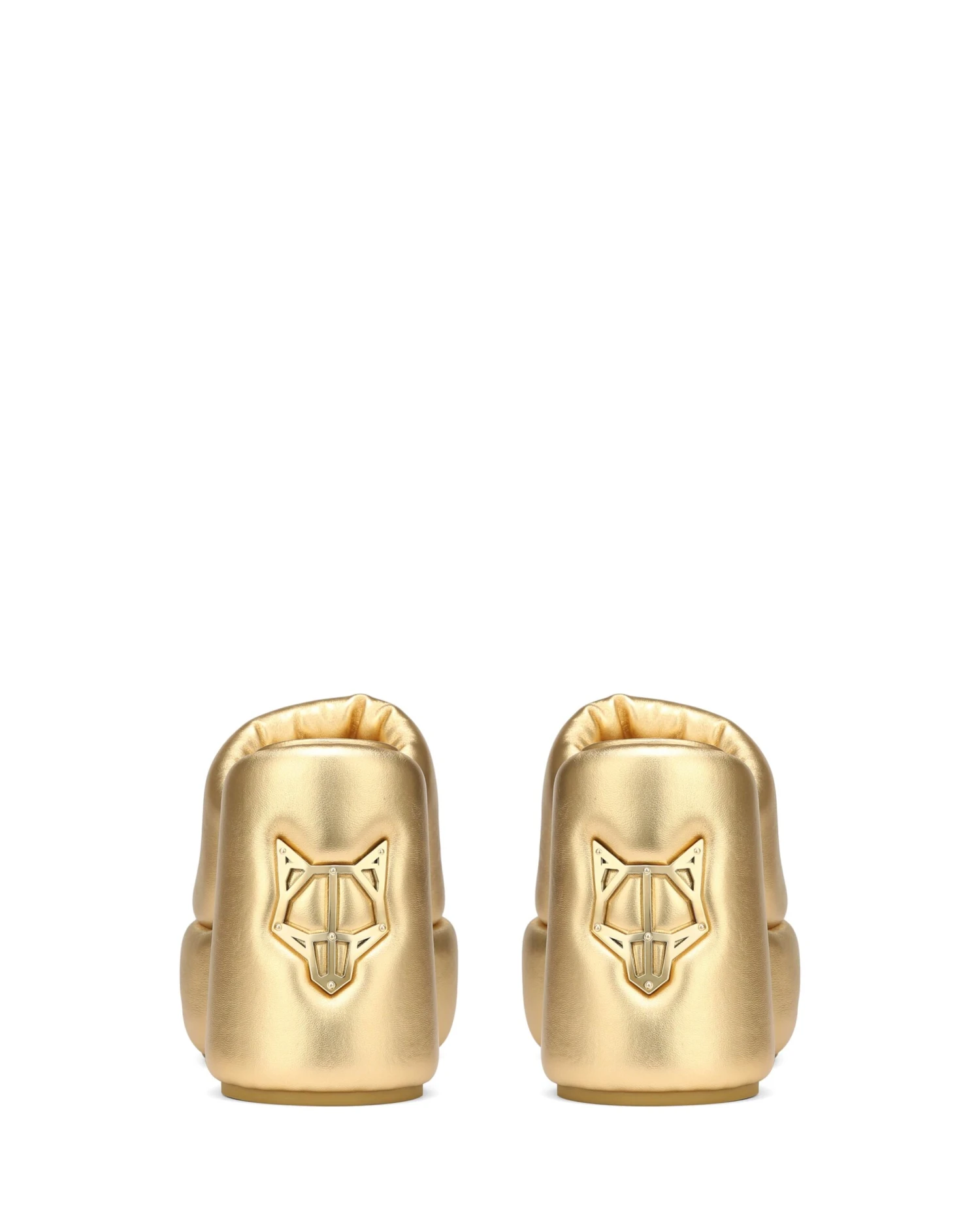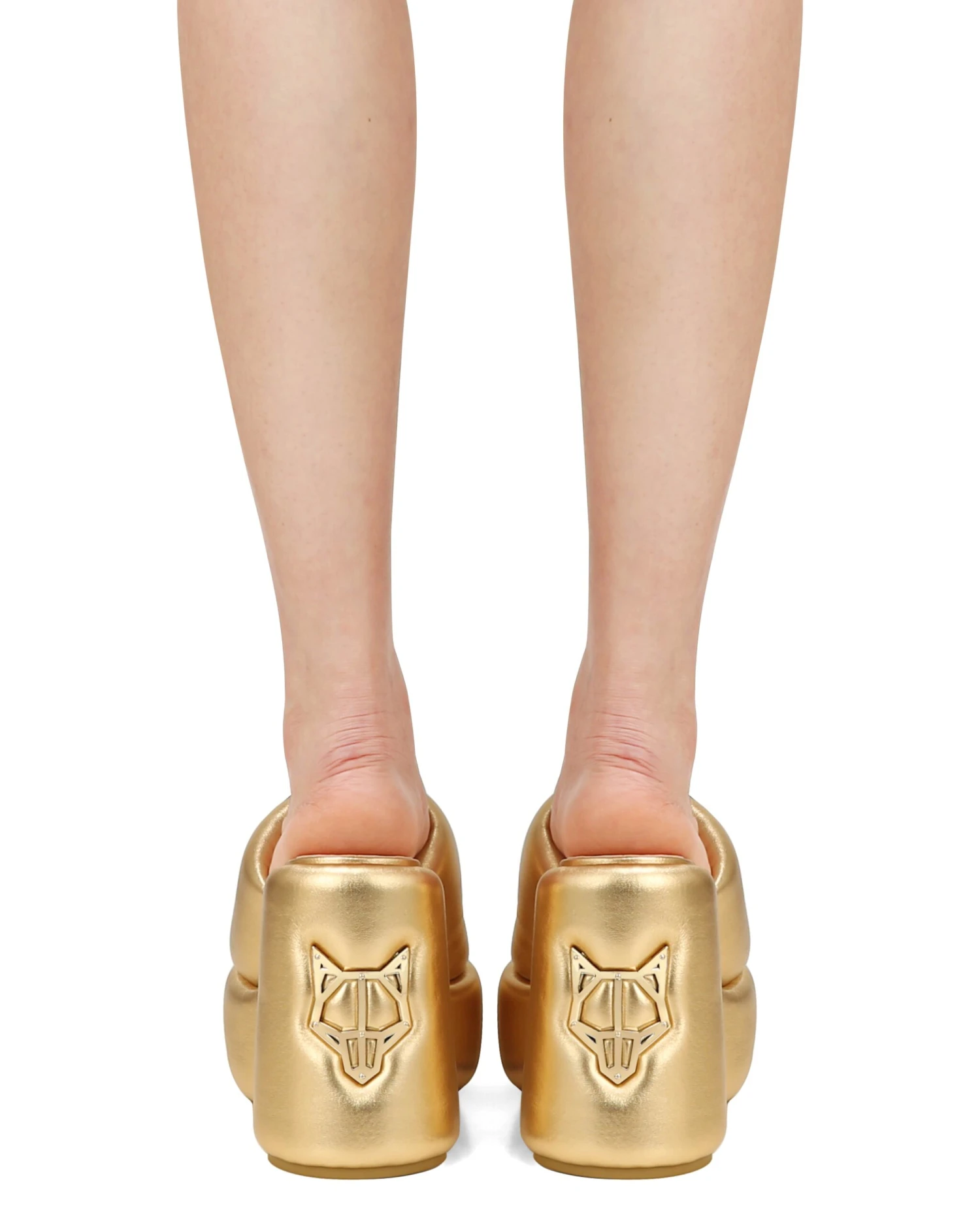 - Iconic Wolfe head heel plaque