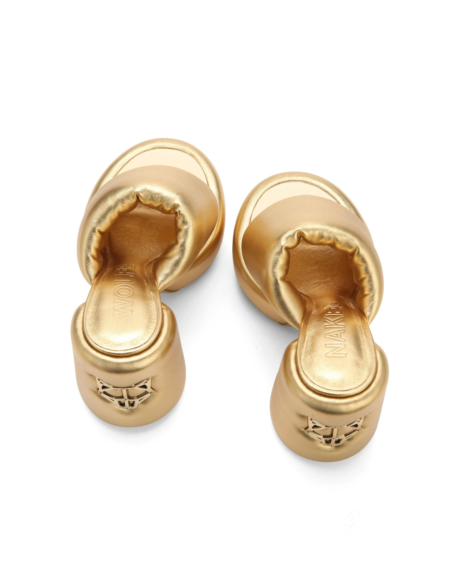 WOW: by Naked Wolfe, has arrived. Inspired by the full moon, WOW is designed with a super round-toe platform and form hugging padded leather for the ultimate WOW look. The shoe features a corresponding padded heel and upper, and, of course, a metal Wolfe head heel plaque synonymous with our coveted designs.