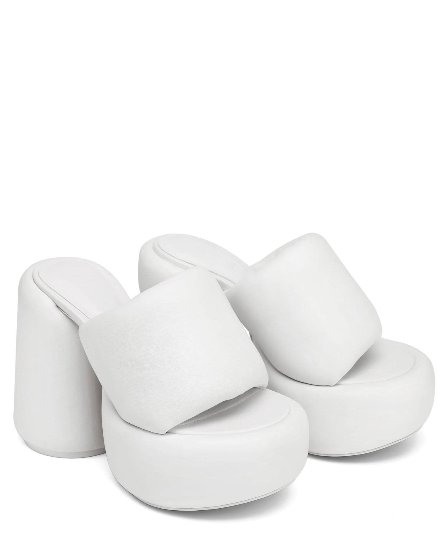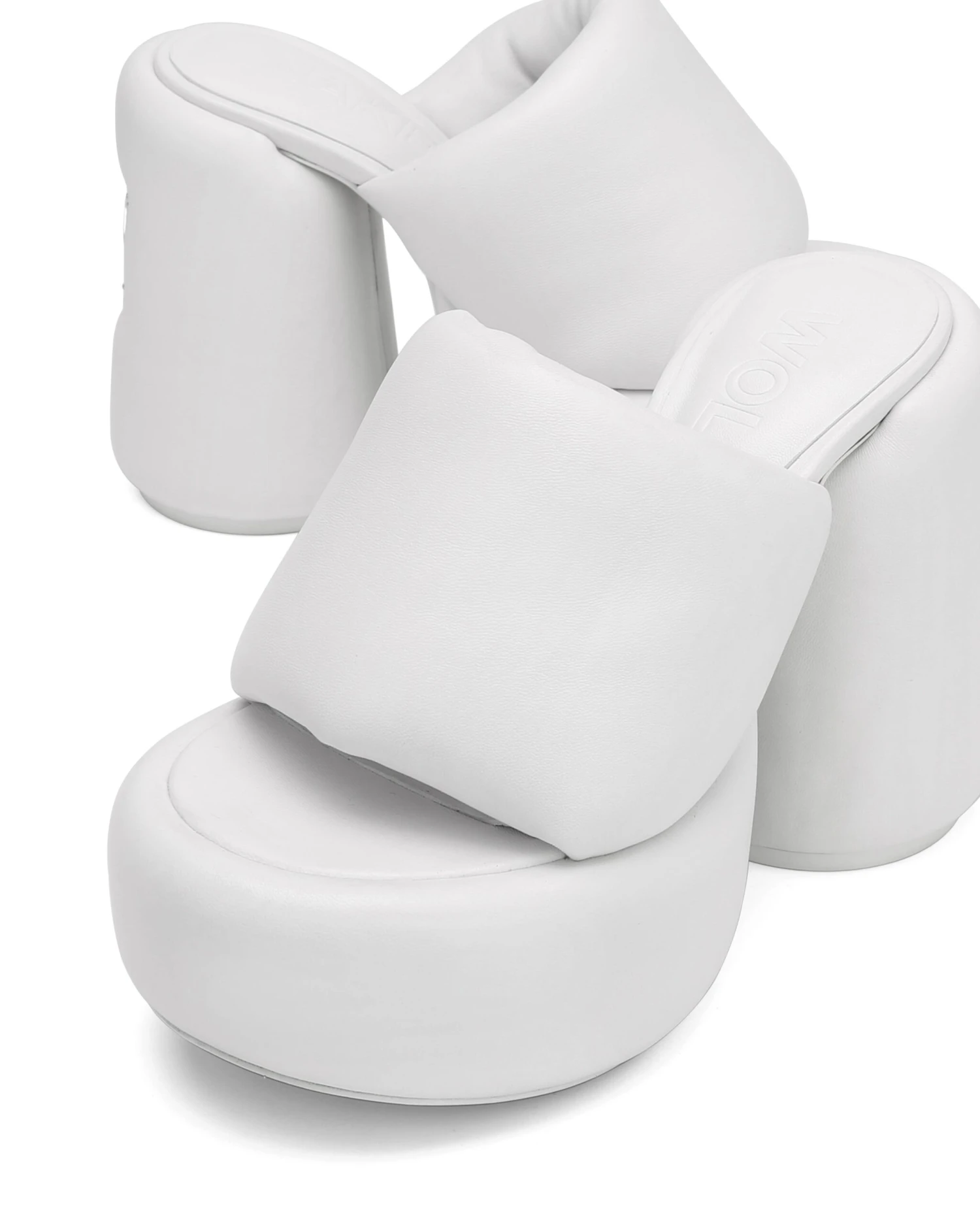 Inflated like you’ve never seen before, WOW is our brand new heel… with a toe shape design inspired by the full moon in a new, super round shape. Made from super-soft padded leather upper and lining with a padded heel and platform to match, featuring the famous wolfe head plaque on the heel.